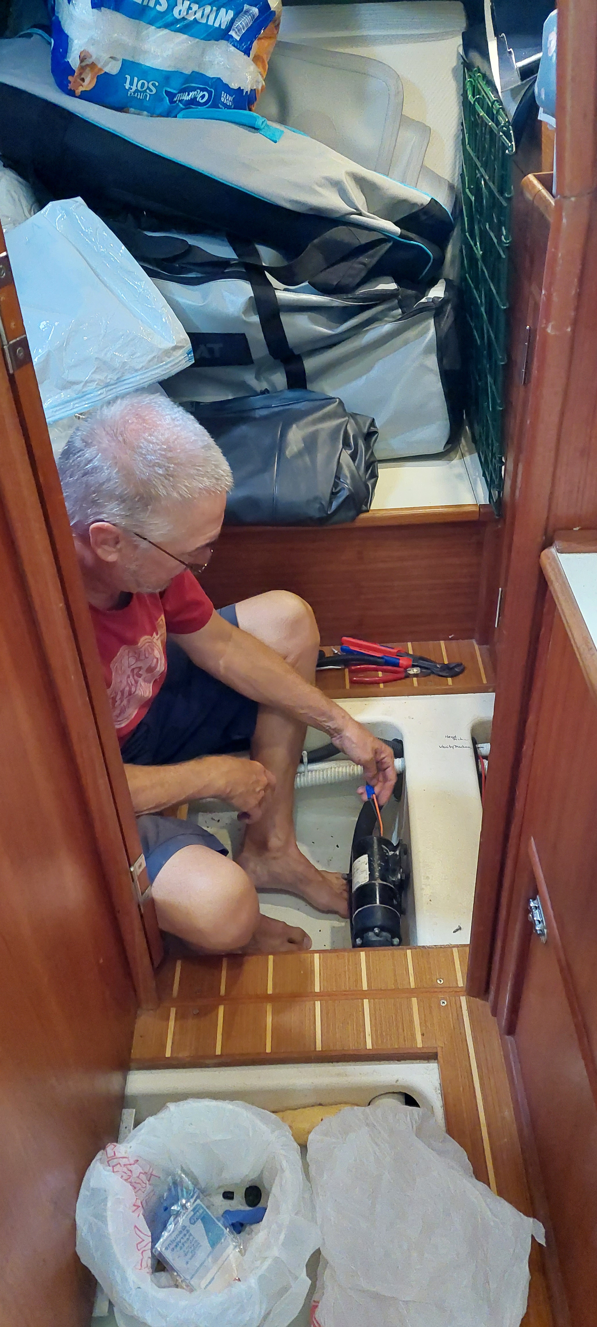I know I have been lax about posting, so now I am catching up. We have been busy getting the boat ready to take to Mexico. Dave is amazing! He installed a manual water pump in our gally sink, a new inverter so we will be able to use our ac outlets when we need to. He also installed an AIS transponder so people will be able to see us on their chart as we are sailing, an extra DC charger, and most importantly new macerator pumps so we can empty our holding tanks when we are at least 3 miles off shore.