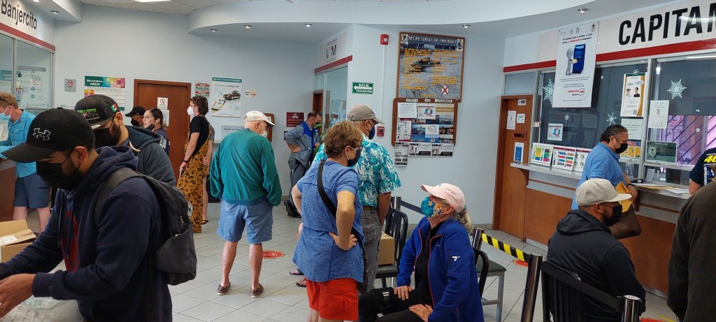 At Marina Coral, they will help you check into the country. This is a bit different from flying in. They drive you to the building that houses Immigration, the Port Captain, the bank, and where you get your TIP. Juan was amazing orchestrating 4 different boat check-ins. With all we had to do I was amazed that it only took about 2 hours. Note that masks are required everywhere! I feel good about that. Our marina was able to get us our National Park Passes. We are set.