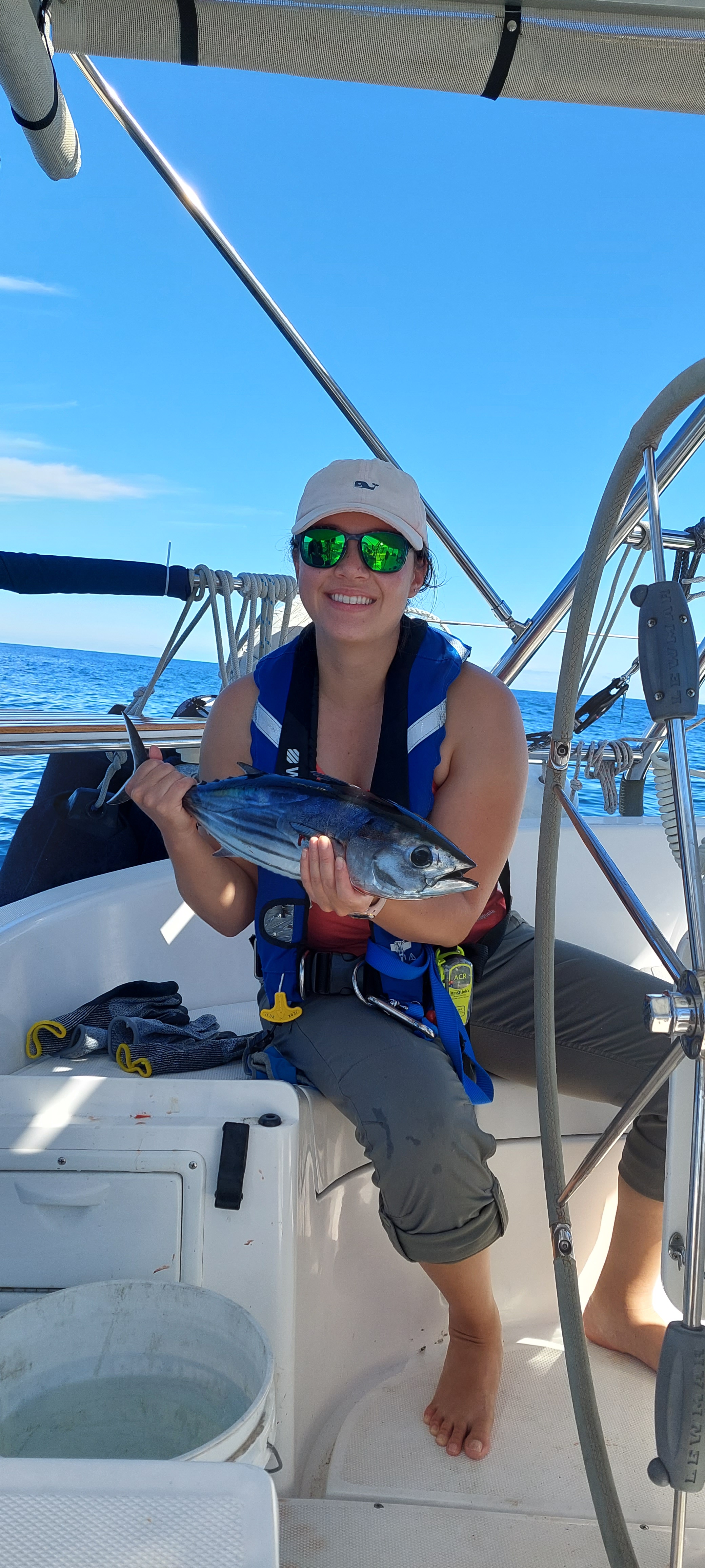 1130 caught our first fish! Skip Jack Tuna for dinner! Thanks John, Shannon, Don and Roz for our fishing lessons!