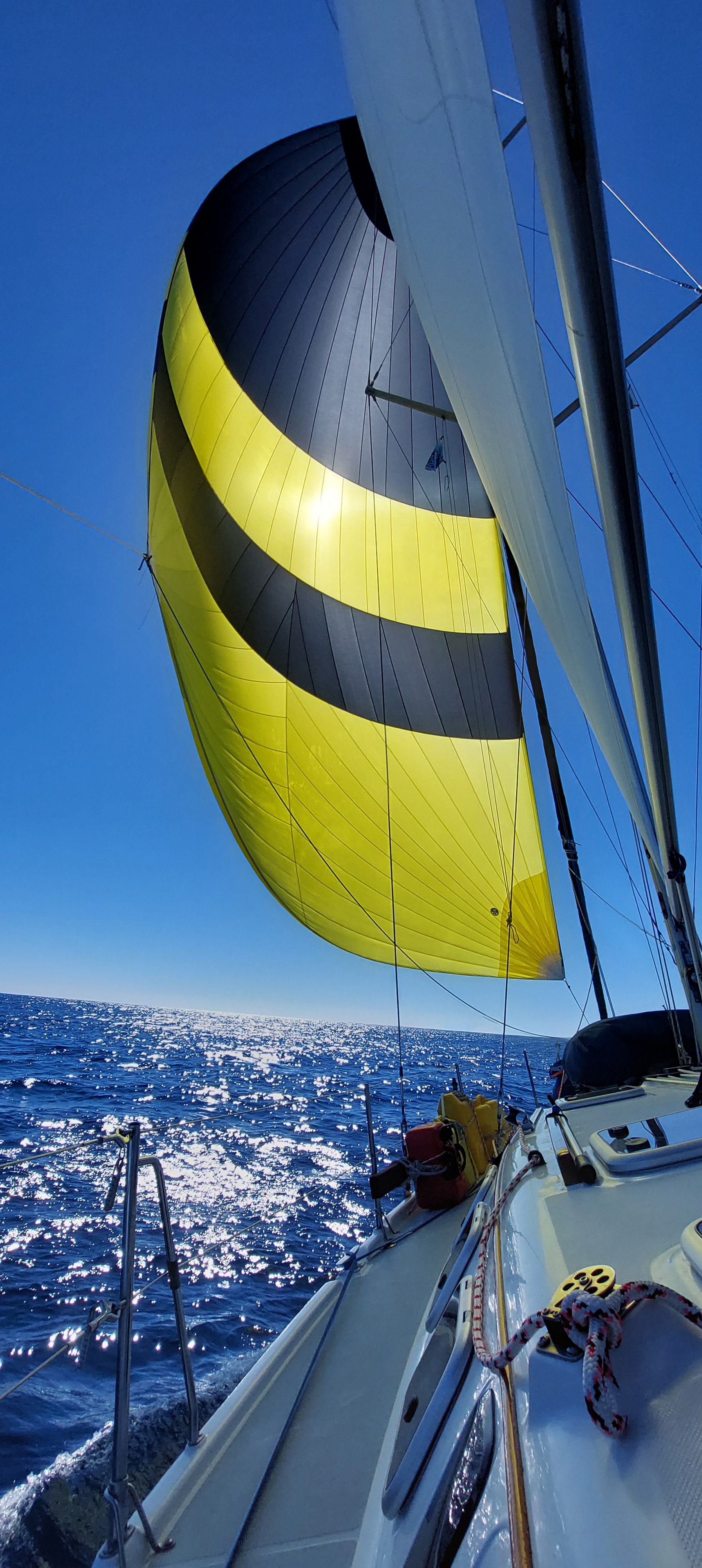 We have wind and we are sailing! We have our new jenniker flying and going as fast as the motor. Great! We were able to sail almost hours today. It was awesome. Sunny, 5 to 8 foot swells. We were sailing downwind and with the swell so it was not bad at all. The best part, we were sailing faster than we motor!