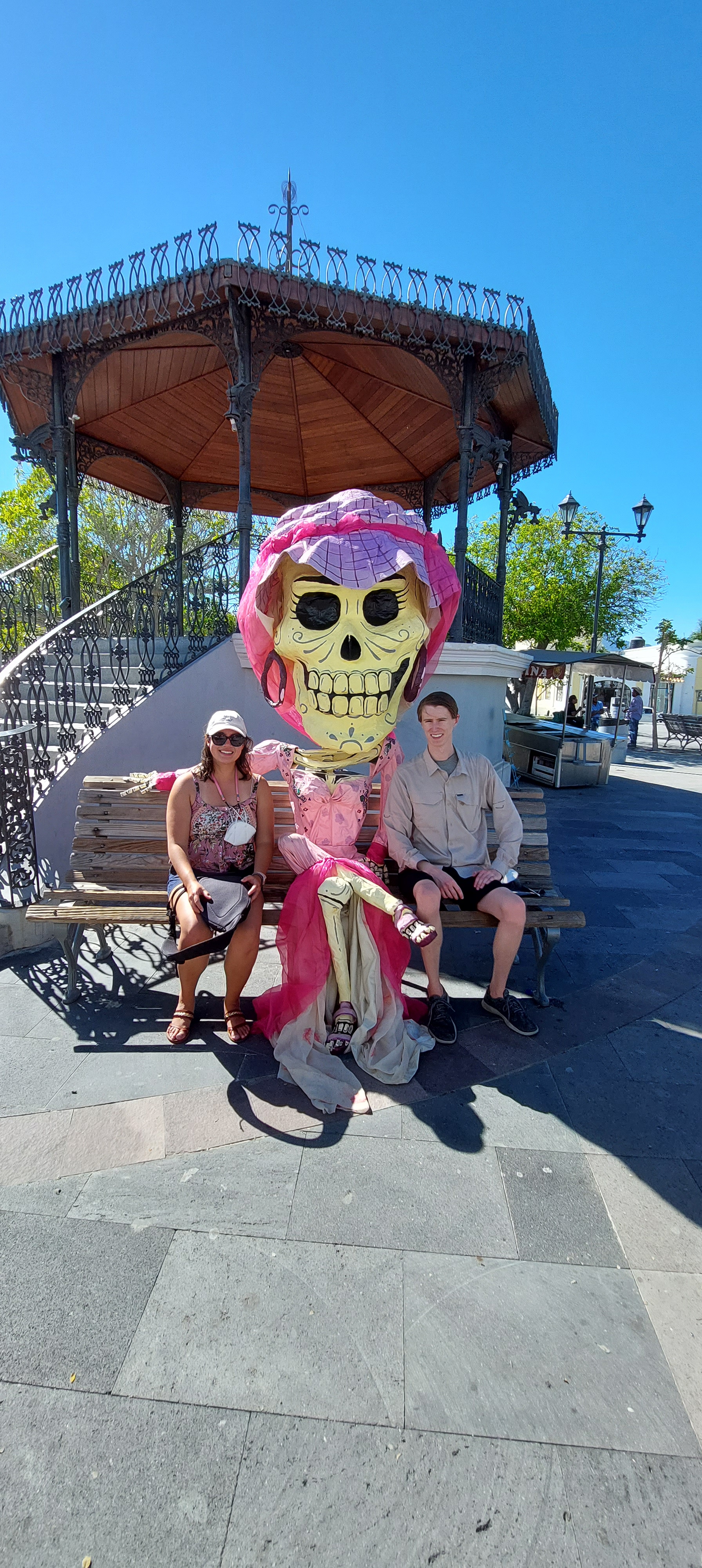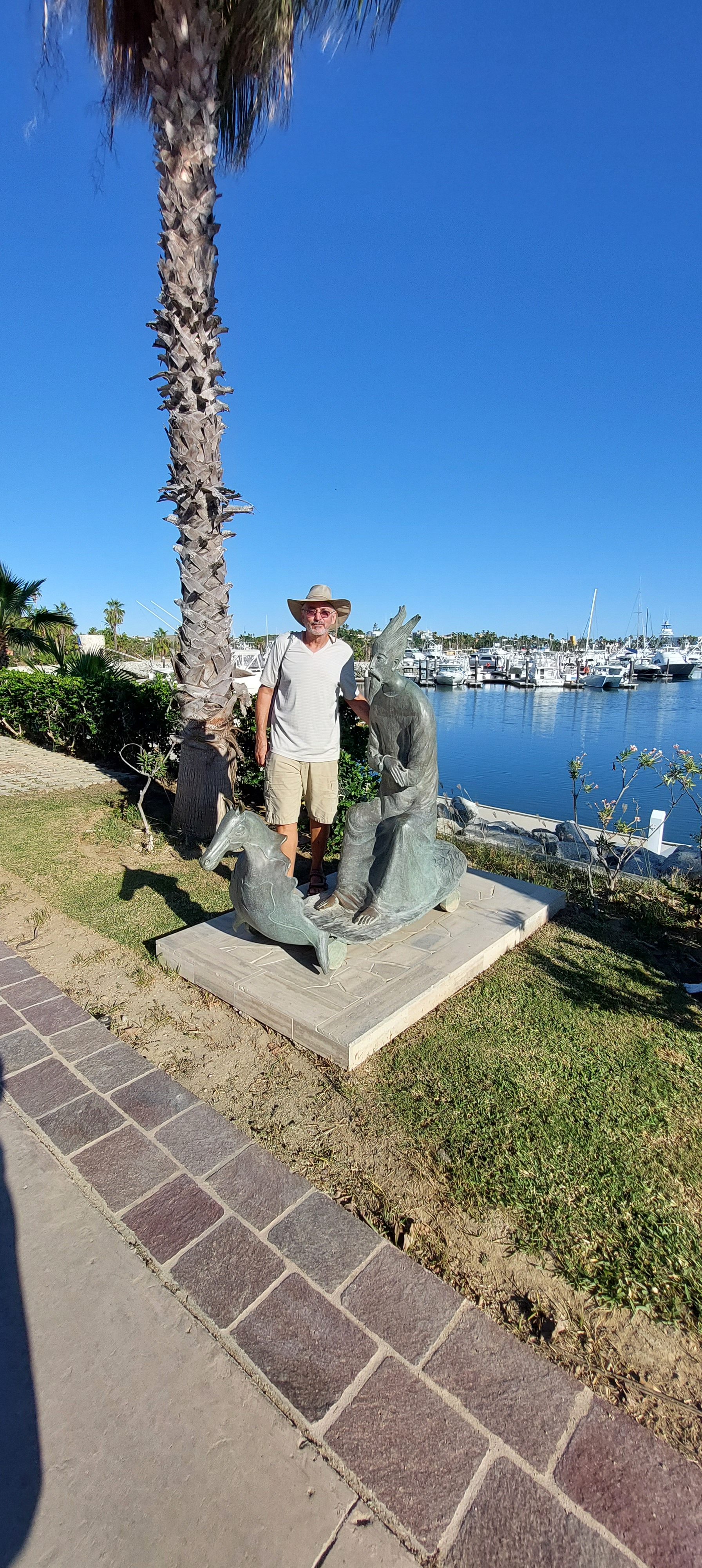 Rick and Janis were good and did their chores after breakfast. They washed Star. Nicole, Kelsey, Dave and I took the bus to Old Town. It was very quiet not a lot of people wandering around.  We saw some beautiful blown glass Chandlers in this one store and stopped in. Niko is one of the artists that that has his work for sale.  He happens to be from Oregon, he came there for vacation and never left. So cool to talk to him. Next we went to the Town Square. There were some day of the dead figures leftover from the festival that was held a few days earlier.  Then of course a beautiful church and the San Jose Del Cabo sign. Good fun. All that walking made us thirsty so we had to stop for margaritas – happy hour you know.