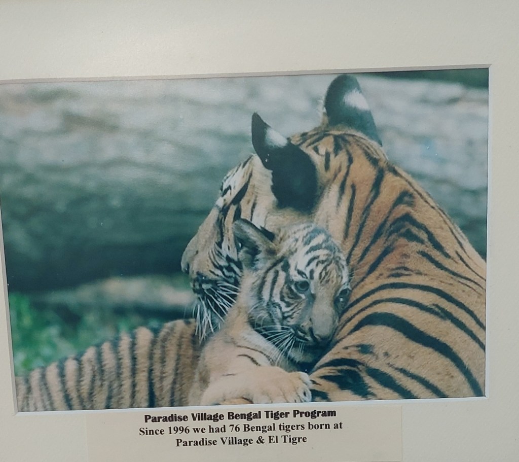 We have been having a great time in Paradise Village. They have 2 Bengal tigers that they mate. Duke and Daisy have had 75 babies. They also have Parrots.