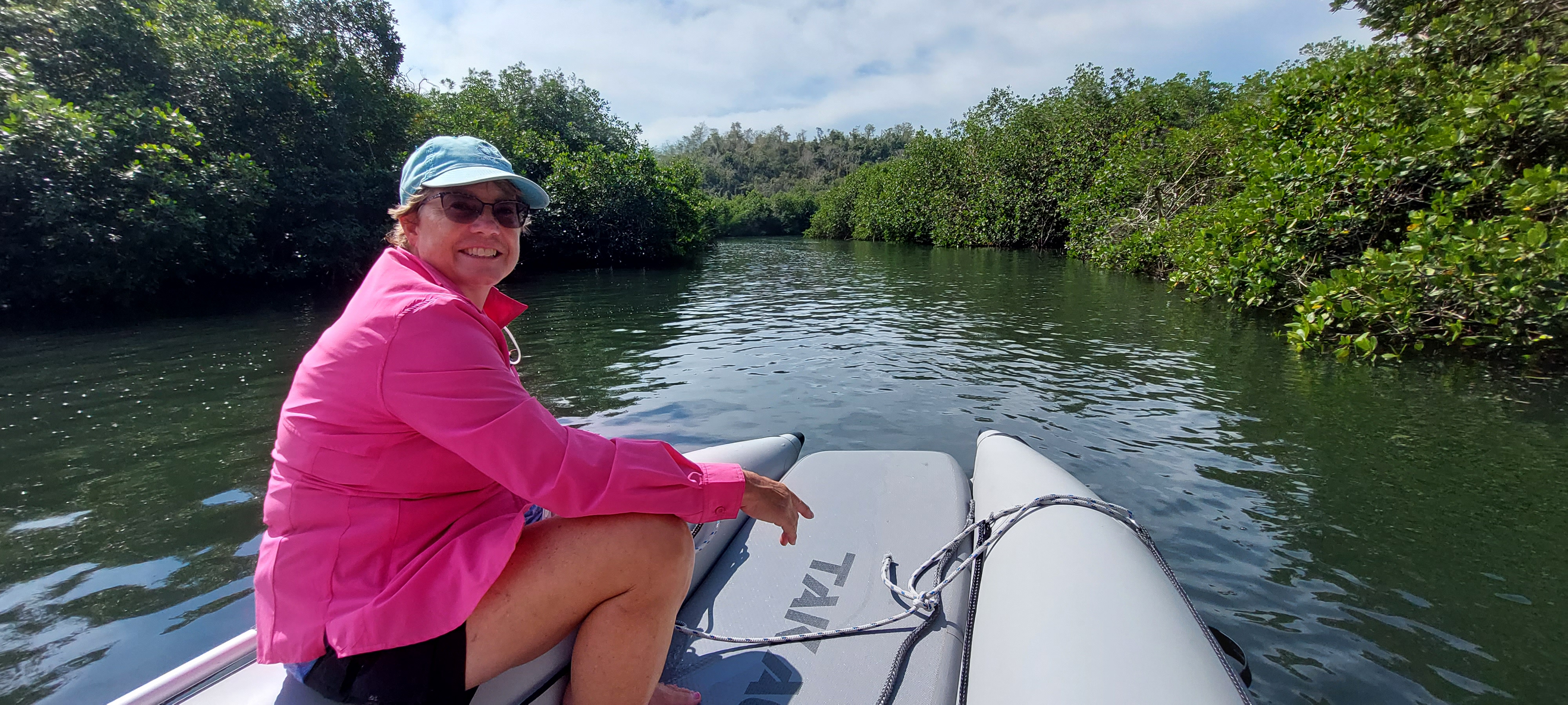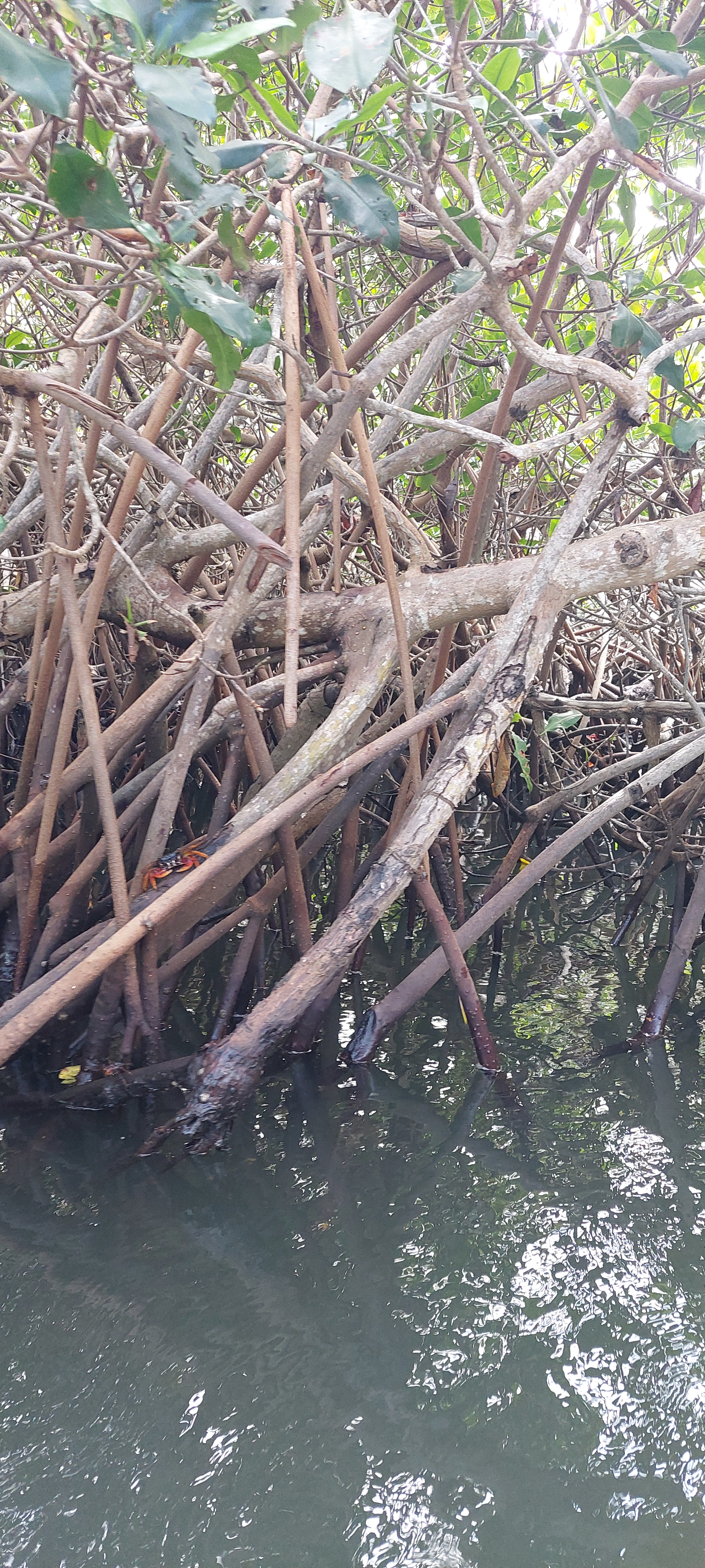 There is a mangrove lined estuary that meanders toward a lagoon that is near the 1st Tenacatita bay. It is important to go at or near high tide to get across the shallow opening. We didn’t time it so great so we had to carry our dinghy a little way but not too far. The estuary is filled with birds, red crabs crawling on the roots of the mangroves, and crocks (although we did not see any this time). We made it back in time to enjoy dinner on the beach – again!