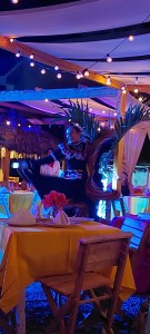 The small town if Barra de Navidad is just across a small channel. To get there, you call the water taxi and he pucks you up at the marina a drops you off in town. It cost 40 pesos which is about $2.00 US. In town there are many, many great restaurants, little shops that sell tourist trinkets and such, a few small grocery 7-11 type grocery stores and bars with live music. The good thing is most of the restaurants have outdoor seating.
