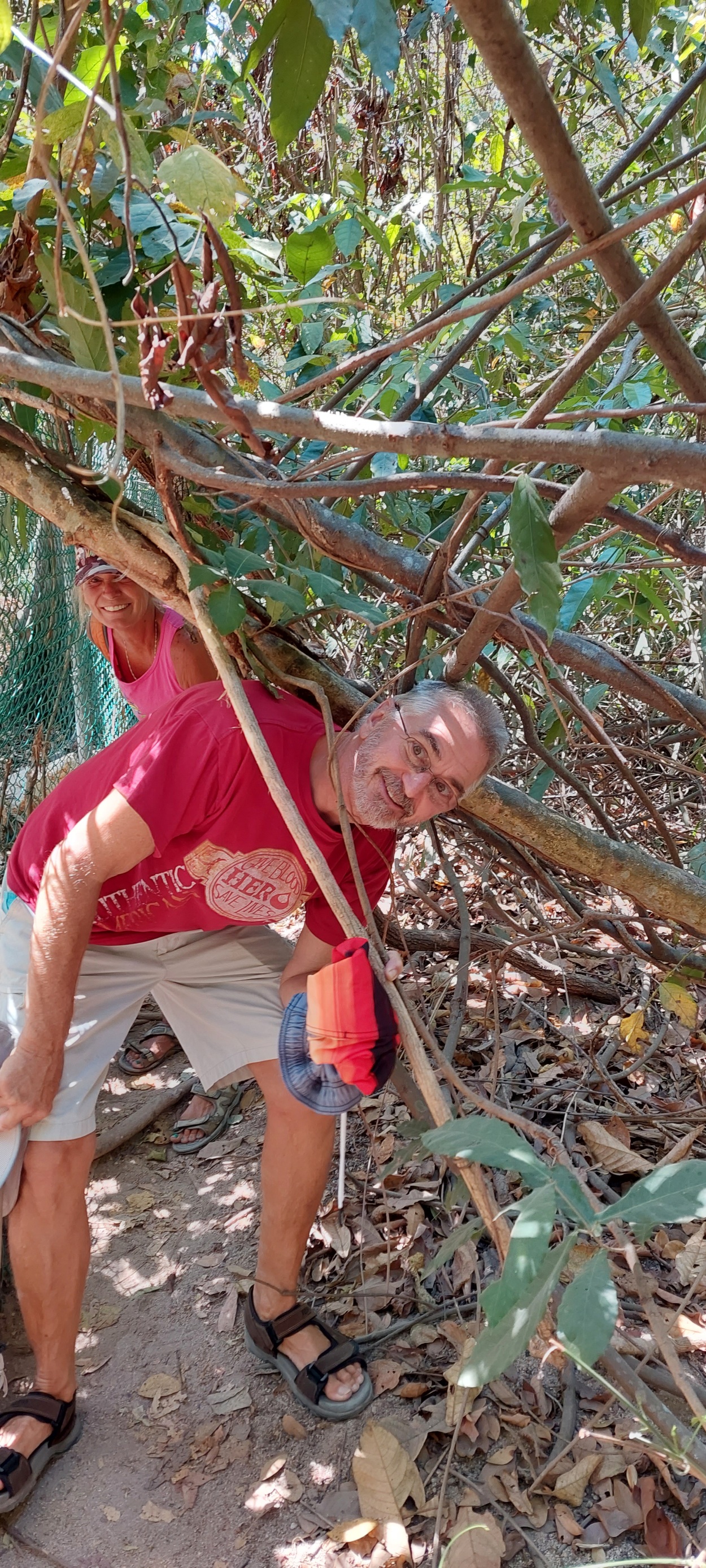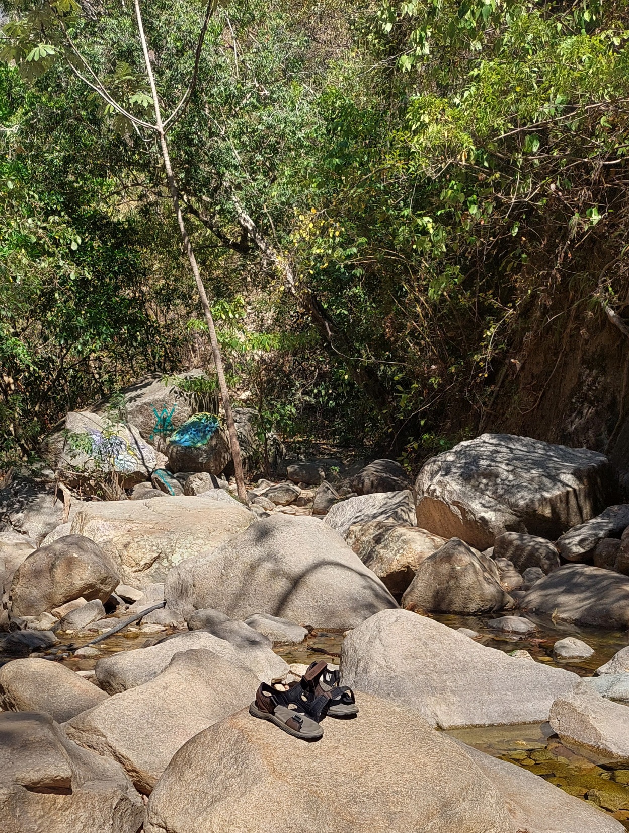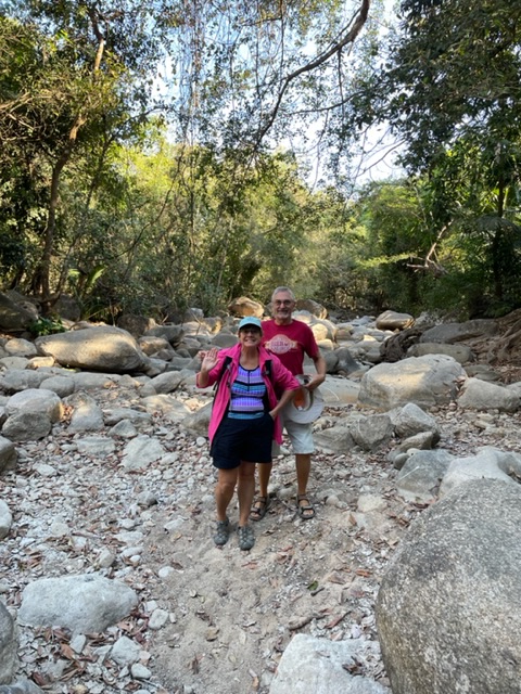 Our friend Alicia took us there. We had to take 3 busses to get to Mismaloya. Then we had a hike up a dry river bed. It was mostly dry but we had to walk for a short time in water. At the end we had a nice swim in cool water which we shared with a bunch of fish and four other hikers. A short while later a tour group of about 30 people showed up. They did not stay long.