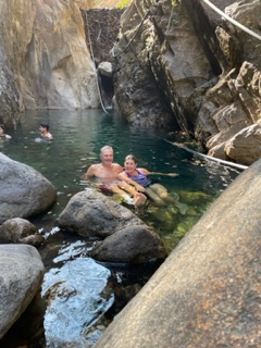A beautiful hike took us to a beautiful swiming hole and waterfall. Well, it was a man-made dam that had water overflowing. Hey it worked for us!