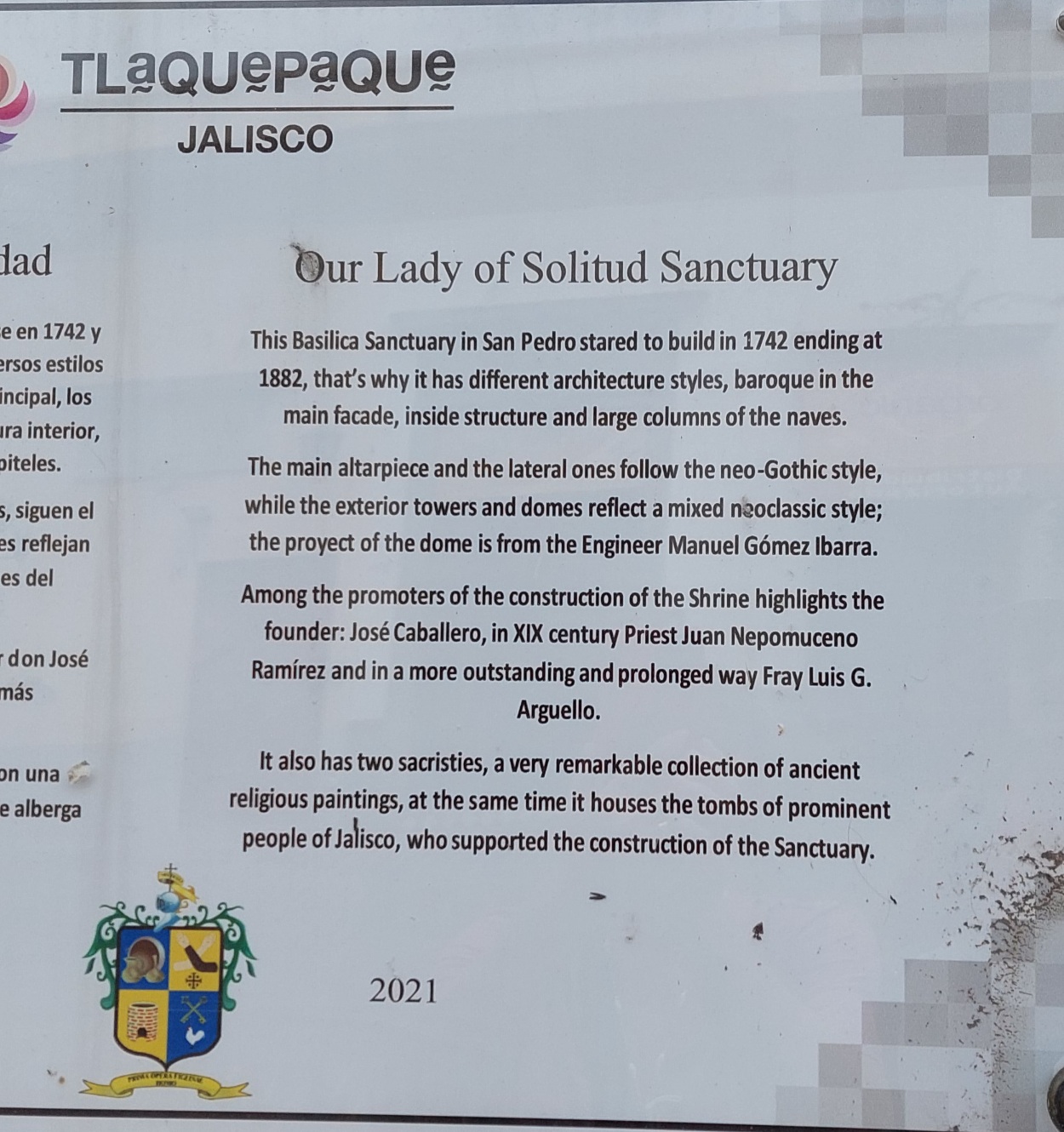 Tlaquepaque is an area that is known for beautiful art and architecture. We walked around Plaza Jardín Hidalgo. There are two beautiful churches around the square, Parish of San Pedro (St. Francis) and Our Lady of Solitude Sanctuary. The House of Craftsmen (Casa del Artesano) and the Regional Museum (Museo Regional de la Ceramica) were closed.