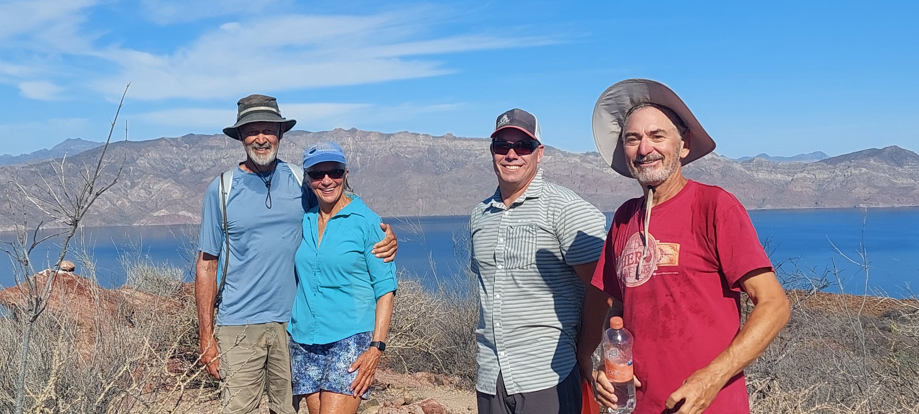 That afternoon, we set out to snorkel by the small cove west of our boat. A family we met in San Diego came alongside of us and said they were heading there as well. It was nice to reconnect. The snorkeling was much better in this area. The water was clear, and we saw a school of hundreds of fish and smaller schools of clown fish and more. We saw some rays but no Morey eels.