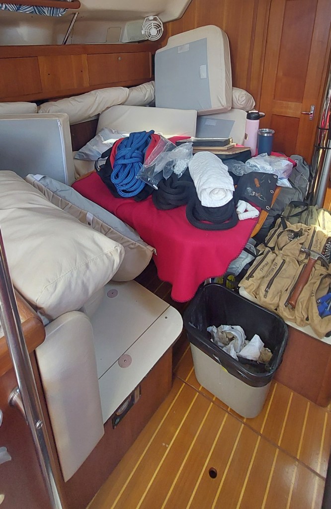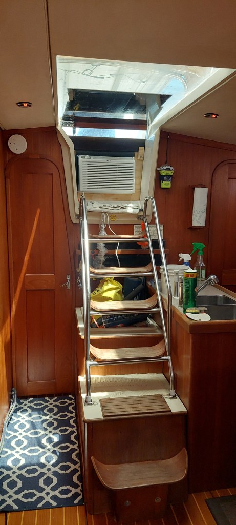 Boat work never really ends. We had a few maintenance items on our list, and since we hurricane prepped the boat in June, we had to unprep some stuff so we could live aboard in some comfort.