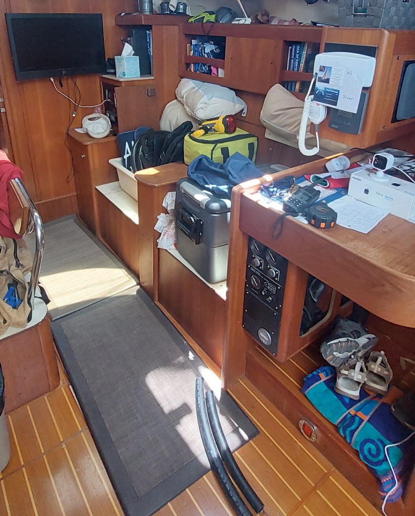 Major items included replacing two hoses that have been in use for the past 23 years. Replacing these hose requires disassembling our entire galley – thank you Hunter Marine! We replaced our raw water engine pickup hose with only normal challenges. We also wanted to replace our galley drain hoses but determined this will require a haul-out to replace the thru hull to get it done right. And we spent at least two hours replacing the engine impeller – a job complicated by the sailboat rule that “stuff on a sailboat must not be accessible to anyone trying to do maintenance.” Note, there was definitely sailor vocabulary being practiced!