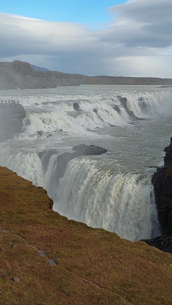 There are thousands of waterfalls on this little island nation. The Golden Circle tour has one outstanding example. Our stop at Gullfoss, Icelandic for “Golden Waterfall”, is one of the largest and most spectacular waterfalls in Iceland. Pictures from our cell phone cameras can’t do this feature justice.