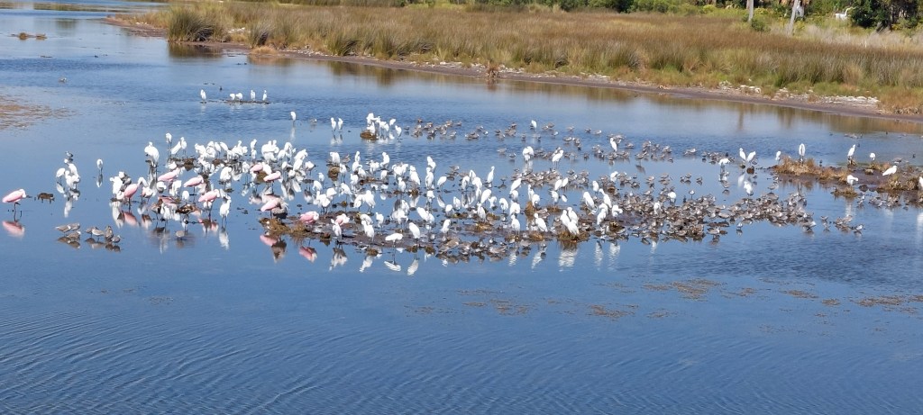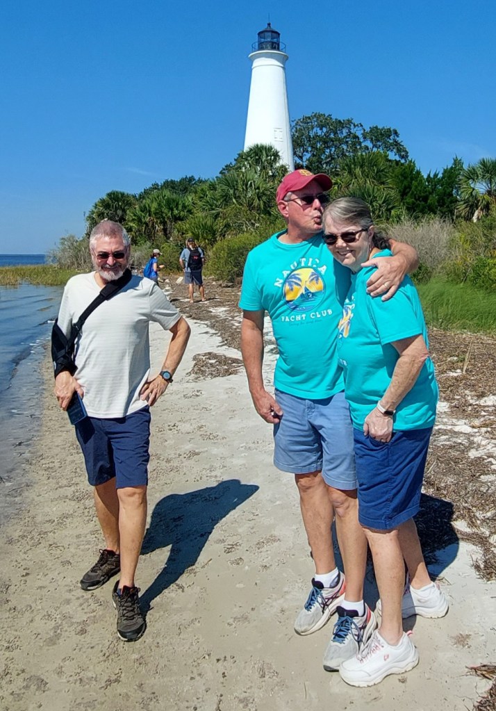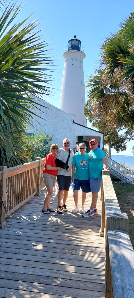 We sure packed in the fun. Our first day of our stay happened to be Tom and Terri’s 33rd wedding anniversary. We were honored to be able to celebrate with them. First we headed to St. Marks Lighthouse and wildlife preserve. History was evident in the area. Several docents provided great backgound. Also crossed paths with pink flamingos, hermit crabs, and hordes of butterflies. No alligators had to be shooed away, thank you.