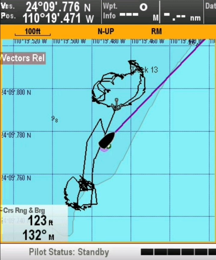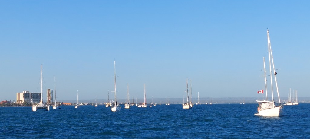 Last challenge! There are lots of boats around here and you don’t want to drift into any. There are many more boats than average as a good portion of the Baja Haja fleet is in town. The currents and wind and sandbars and lots of boats makes it important to find a spot to anchor somewhere where you will not drift into another boat.