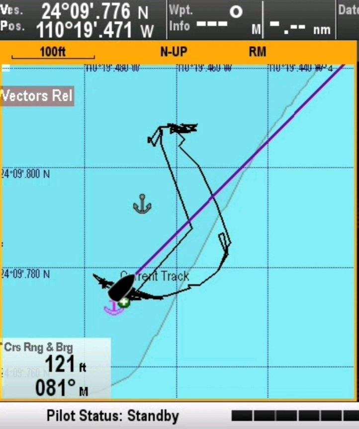 Drifting around your anchor? It surely can’t be that bad! Just look at these images from our chart plotter and of boats all over our anchorage. We have been drifting quit a bit the last few days.