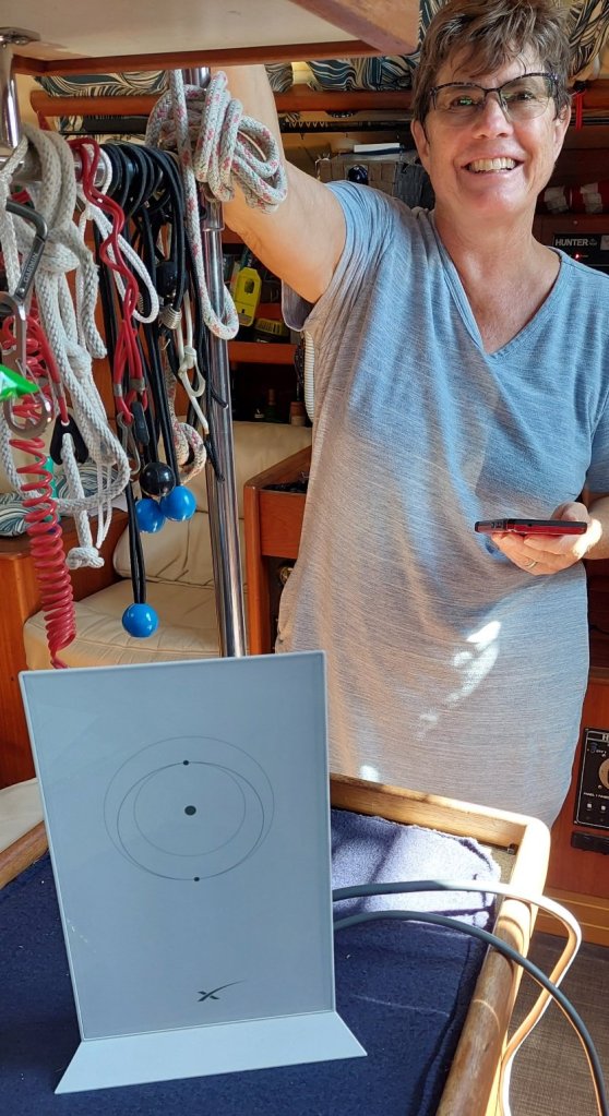Starlink is kind of a miracle here in boater land. There were a dozen Starlink boxes in the office waiting for their owners to collect them. We now have between 50 and 100MB internet bandwidth on our boat when it’s hooked up.