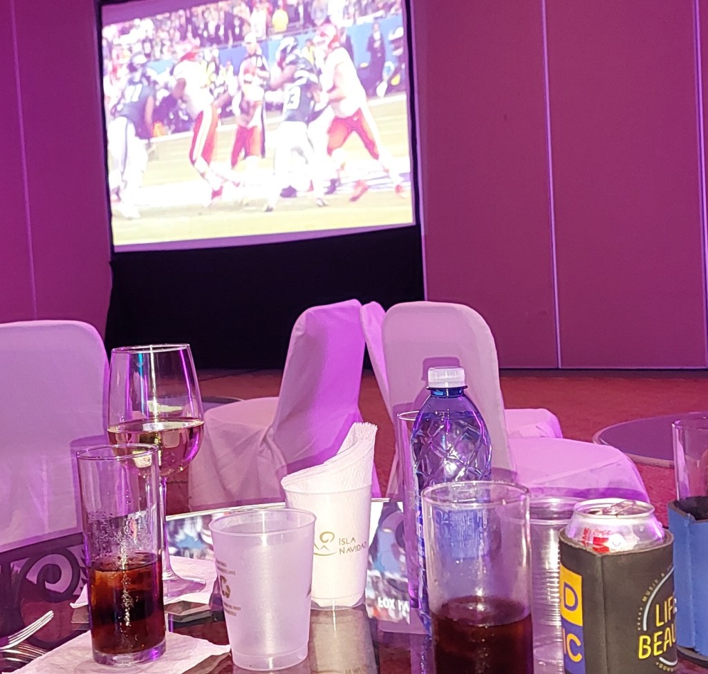 We went to the Super Bowl Party at the resort with Randy and Patty. I have to say the food presentation was fantastic. The food was OK. The ribs and guacamole were my favorites. The people were very subdued. The game, on the other hand, was great. We really didn’t have a favorite. I was cheering for the Eagles because my family was. They didn’t win, but what a game!