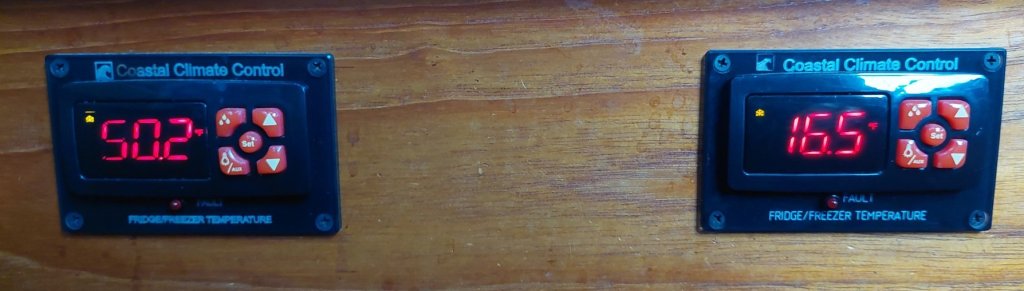 Fridge control left – getting cooler (six degrees to go!) Freezer control right aleady really cold.