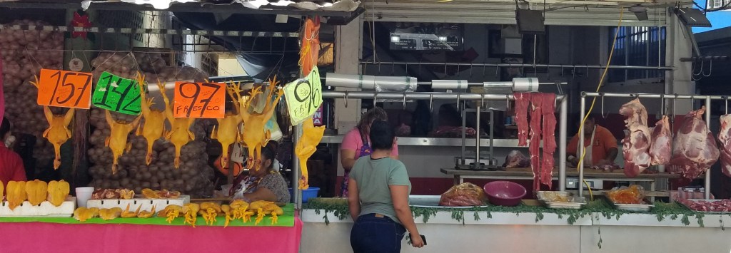 Sunday we decided to take a bus and see where it went. The one we got on took us to the Mercado. It is always interesting to see the chickens just hanging there! I’m not brave enough to try it. After walking around the mercado a bit, we walked the beach, had smoothies and enchiladas, then headed back to the boat for siesta.