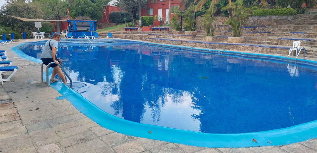 We are staying at a nice hotel tucked up in a little park area overlooking the city. We have a great view and a nice room with a real working flush toilet and a hot shower. Living on a boat makes those special amenities extremely pleasing. Oh, and air conditioning, too.