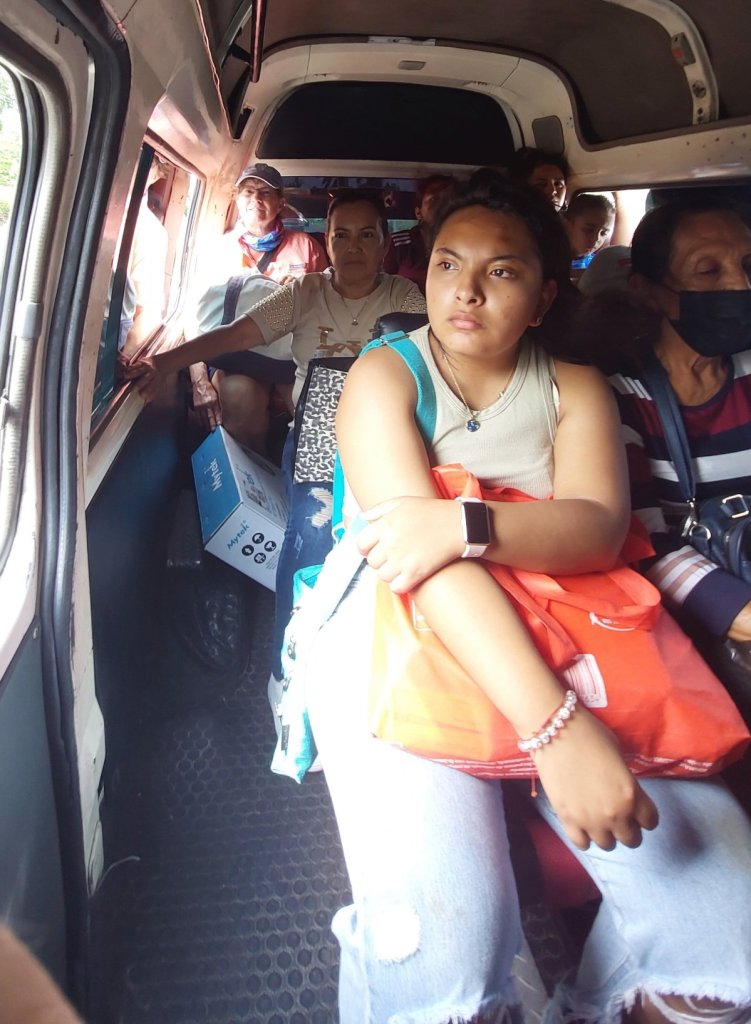 In other news, we just like to share generally interesting stuff. The “collectivo” van that takes us to town costs 30 pesos per person. Our last ride was a little full. Mary had a back seat and I was in charge of closing and opening the door. One of our earlier busses was a bunny bus – a little different than the occasional chicken bus.