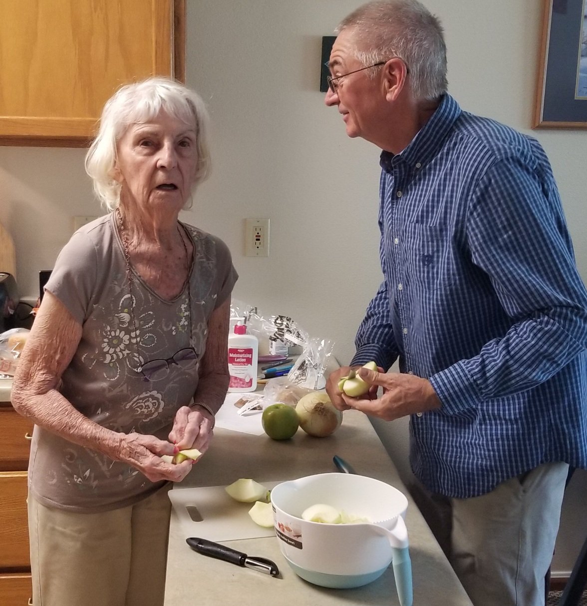 We had a great time visiting Dave’s parents Jean and Jack. They are doing great. We played Bingo, sang with the Karaoke group, exercised, watched a movie, and ate in their cafeteria, and went out to dinner. Dave and Jean also found time to make an apple pie.
