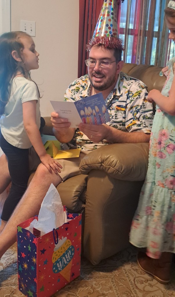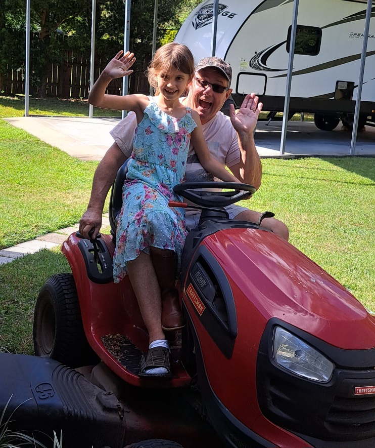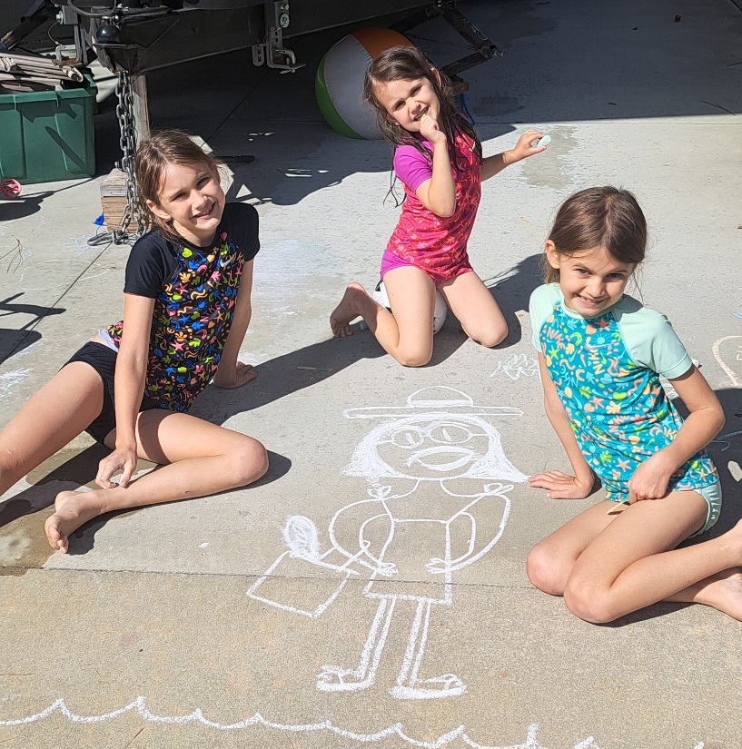 Our last stop was Mary’s brother’s place. We had a wonderful time with Tom and Terri, his lovely wife. A bonus was spending time with Mary’s niece and nephew and their families. We have three great nieces and a great nephew. They were full of love and hugs and fun. We played in Tom and Terri’s pool, made chalk art, and the kids got to ride the lawn mower. Celebrating our nephew’s birthday was also a highlight. He and his band had a gig on his birthday, and man, are they good! It was an evening of great music, good beer, and dancing to some familiar songs.