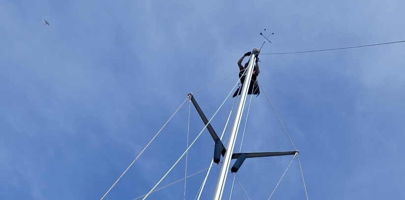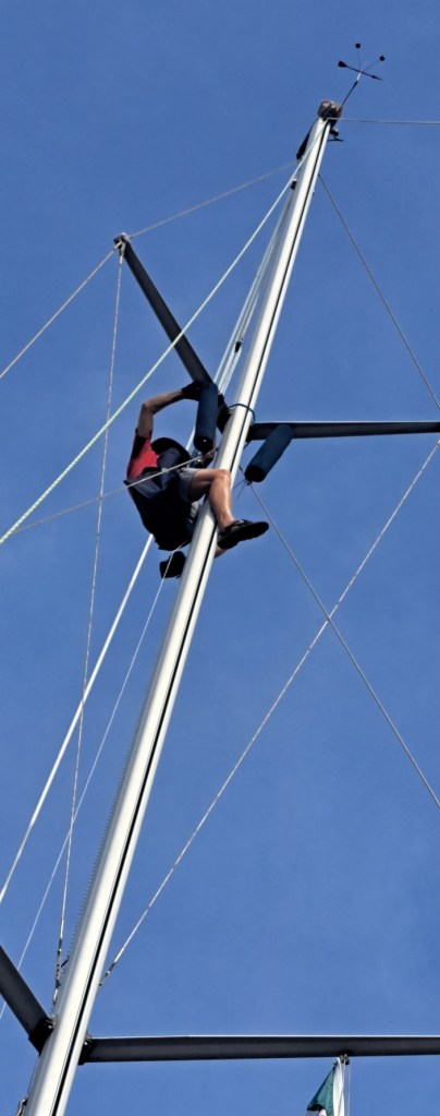 Nice work. Has to be a bit scary up there. I am a bit jealous of your independence from the boatyard.πͺ