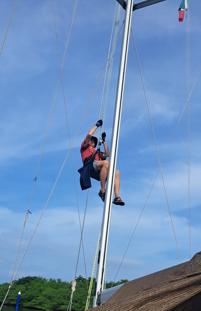Nice work. Has to be a bit scary up there. I am a bit jealous of your independence from the boatyard.πͺ
