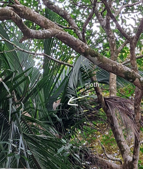 We did get to listen to howler monkeys in the evening, but they were too shy to be seen. We did get to barely see a sloth, just slothing in a tree, though.