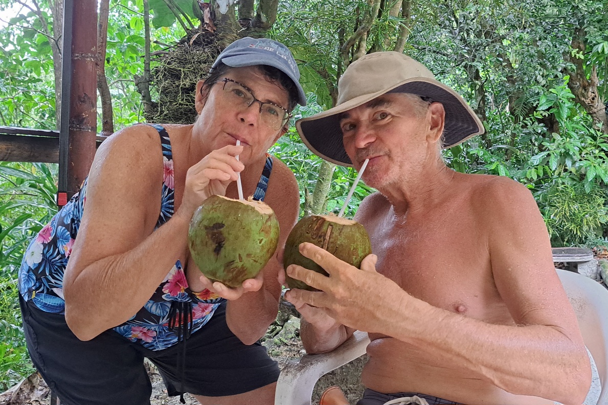We met the beach services marketing director, Carlos, as we landed the dinghy. We immediately had a couple of $6 beers in our hands and a full afternoon and next-day itinerary. We also found our dinghy a little shy of air when we returned from a brief hike with Carlos. Carlos said he had a friend who could fix the leak. We checked the dinghy later – no leak, just a scam. Pirate.