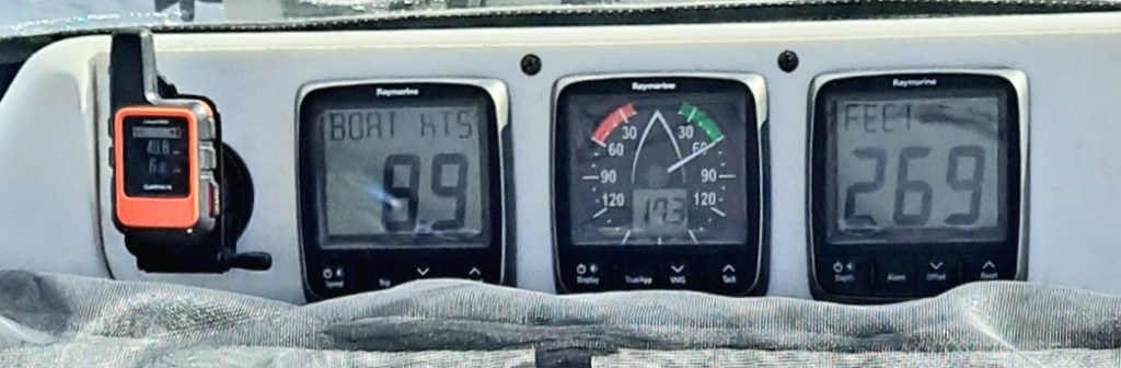 On our way to Quepos, we did get some nice wind and fast sailing. We saw over 9 knots but only got proof of 8.9, but that’s still pretty darn fast!