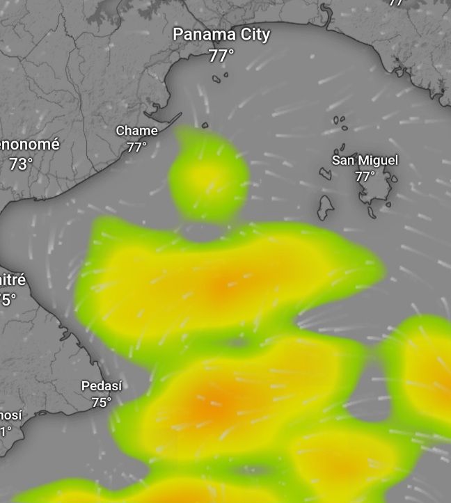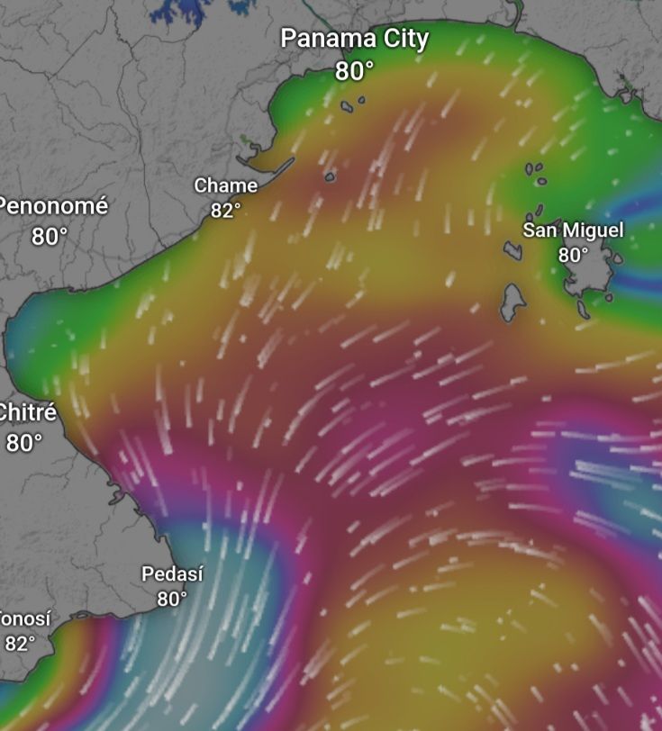 We had about 75 or so nautical miles to cover and a couple of significant challenges to surmount – the weather and the ocean. We are in the dry season according to some sources. Those sources are wrong! We had to dodge wet and sparky storm cells in the middle of the night, and could find very little consistent wind to sail. We also had legendary currents to slow us down.