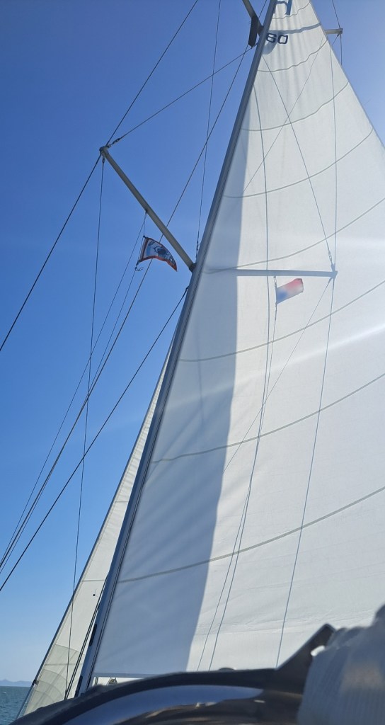 We left Vista Mar before 8AM as there were some favorable winds for sailing. We seem to motor a lot. We sometimes have to remind ourselves that are a sailboat. We did find the wind and we did get almost four hours of actual sailing.