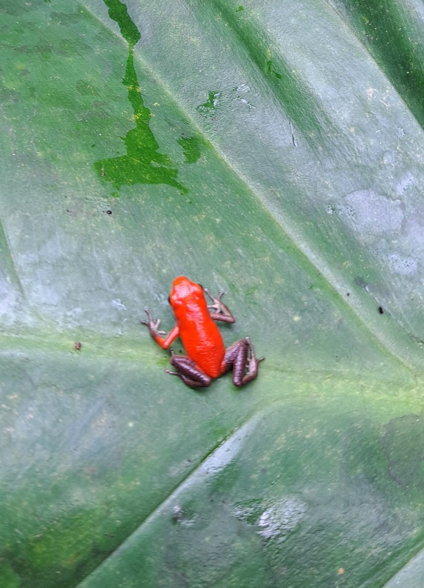 Day three.  We went on a tour to the local village and jungle.  The village was settled by two people over 60 years ago.  Today there are 1000.  It’s a USAID village.  There are no roads.  You get here by boat and a short hike.  In the jungle, we saw sloths, night monkeys, huge spiders, alligators, a dangerous tiny red frog, and a few mosquitos.