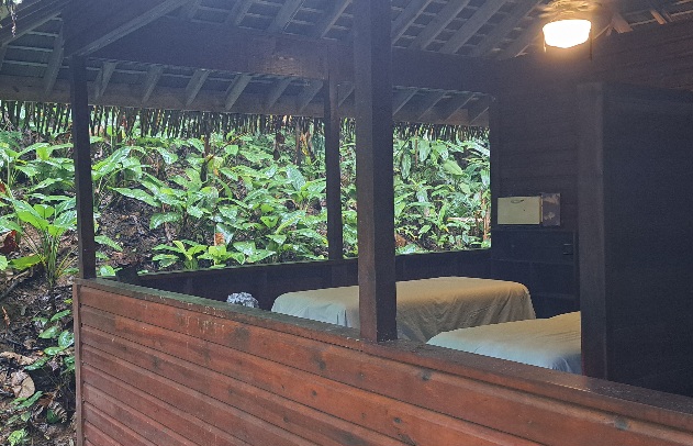 During the massage I could hear a nearby waterfall, monkeys in the trees and many birds. What a treat on a rainy day.