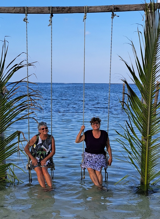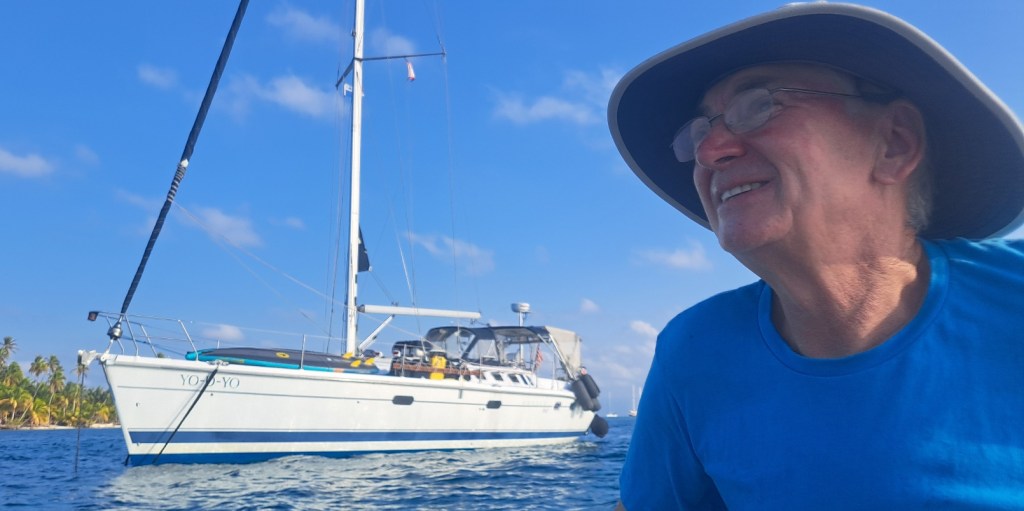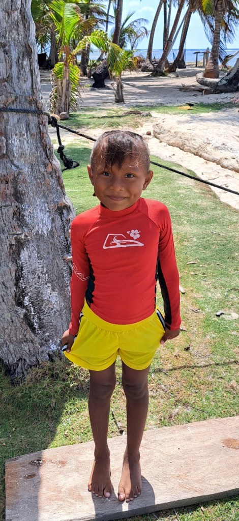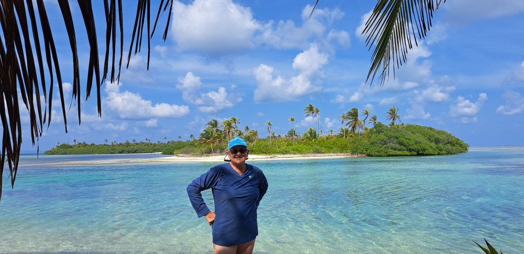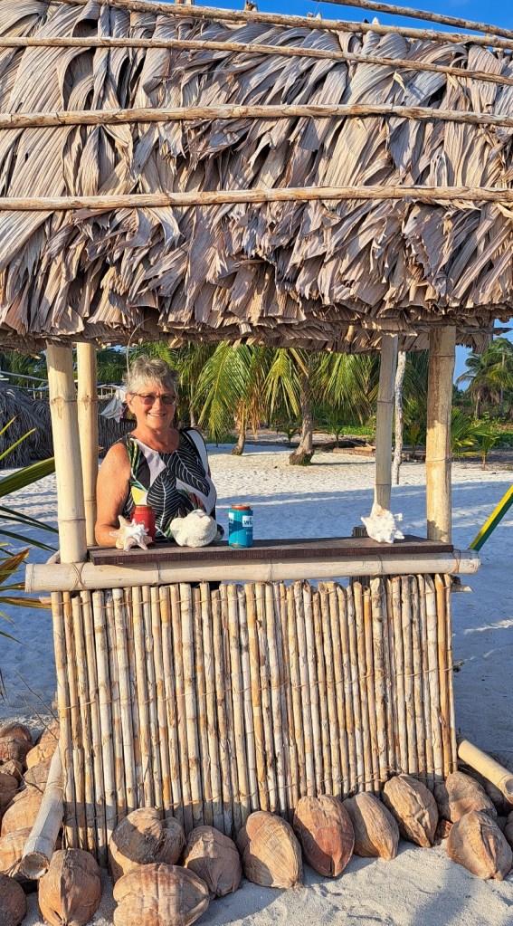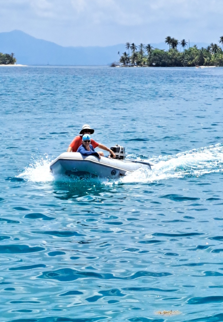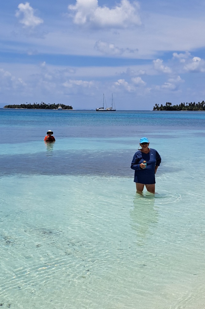 After a couple of days at our secluded W. Holandes Cay anchorage, we moved about 10 miles to The Swimming Pool at E. Holandes Cay. There were more boats here. There were also many more small islands. One island has a tiki bar on one side and a restaurant (Ibin’s) on the other. We met up with another Panama Posse boat and went to dinner at Ibans with John and Kristen from SV Courage.