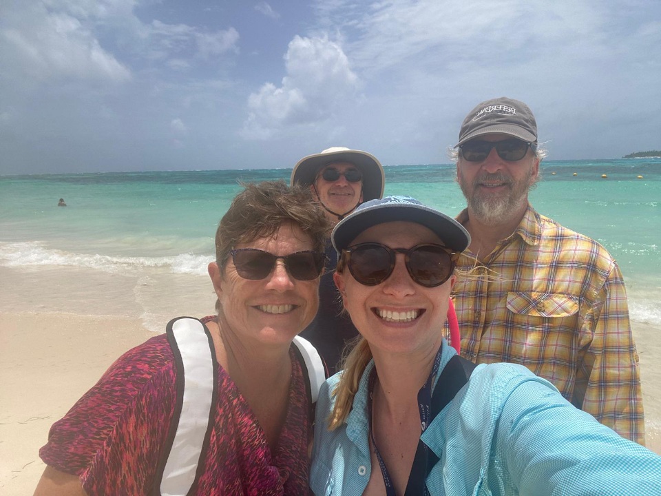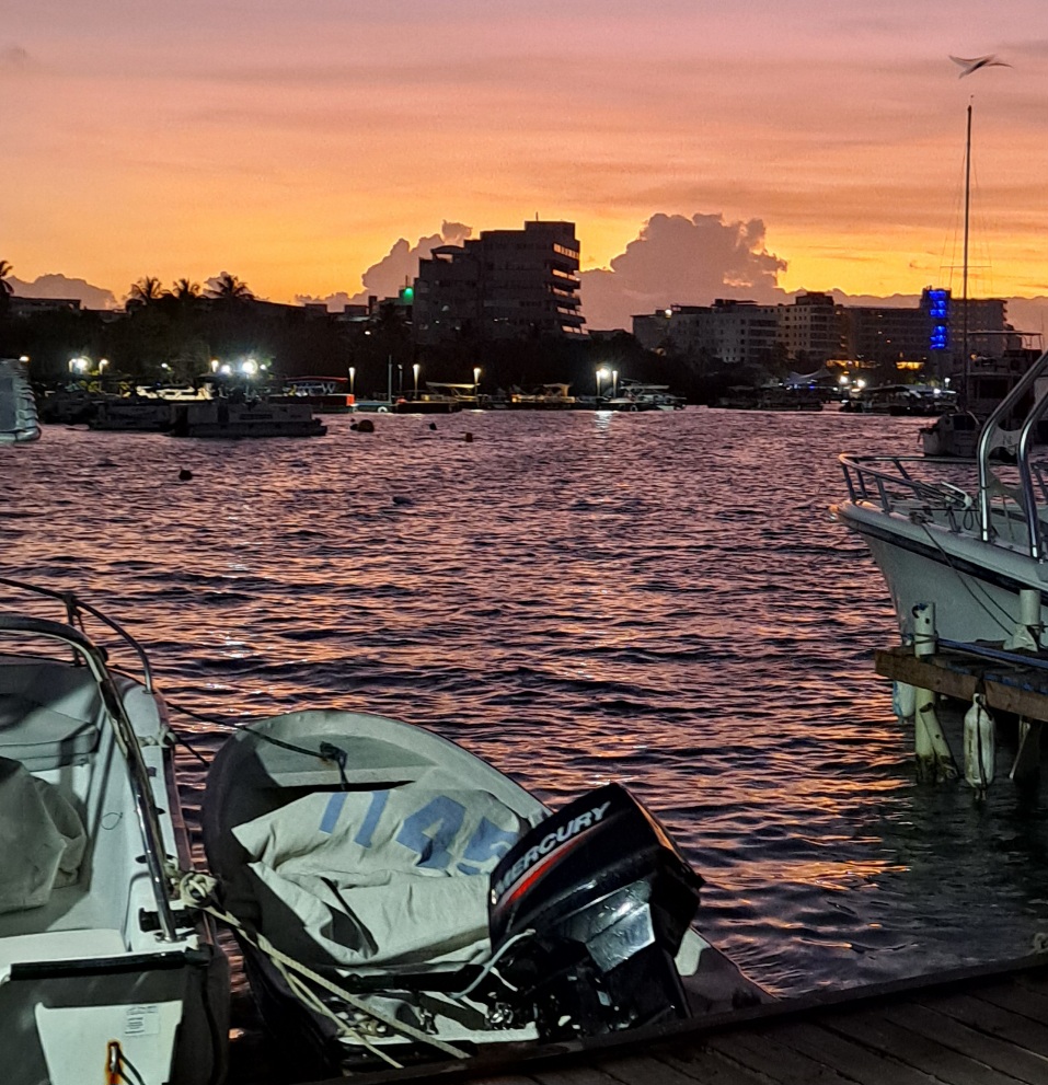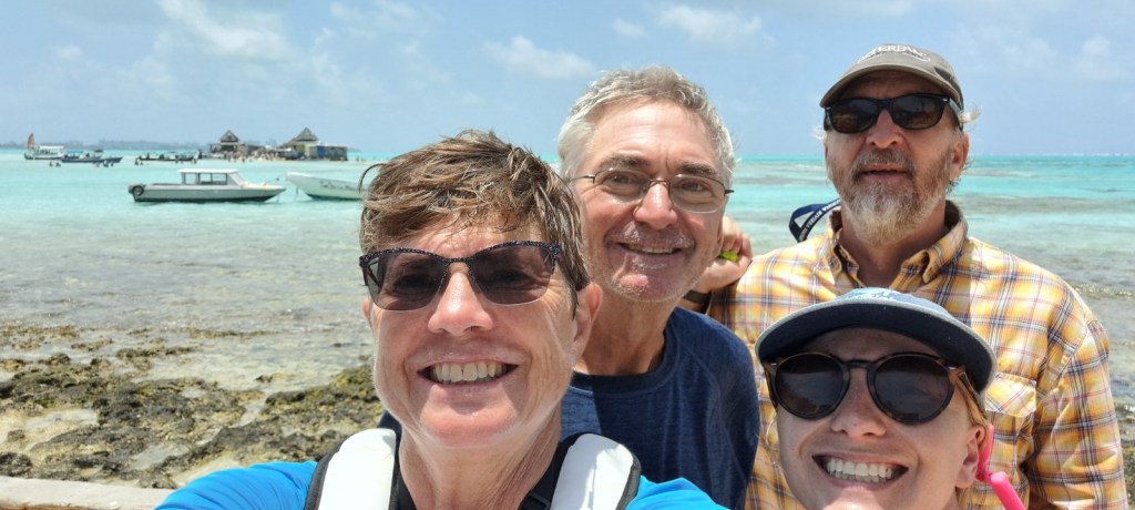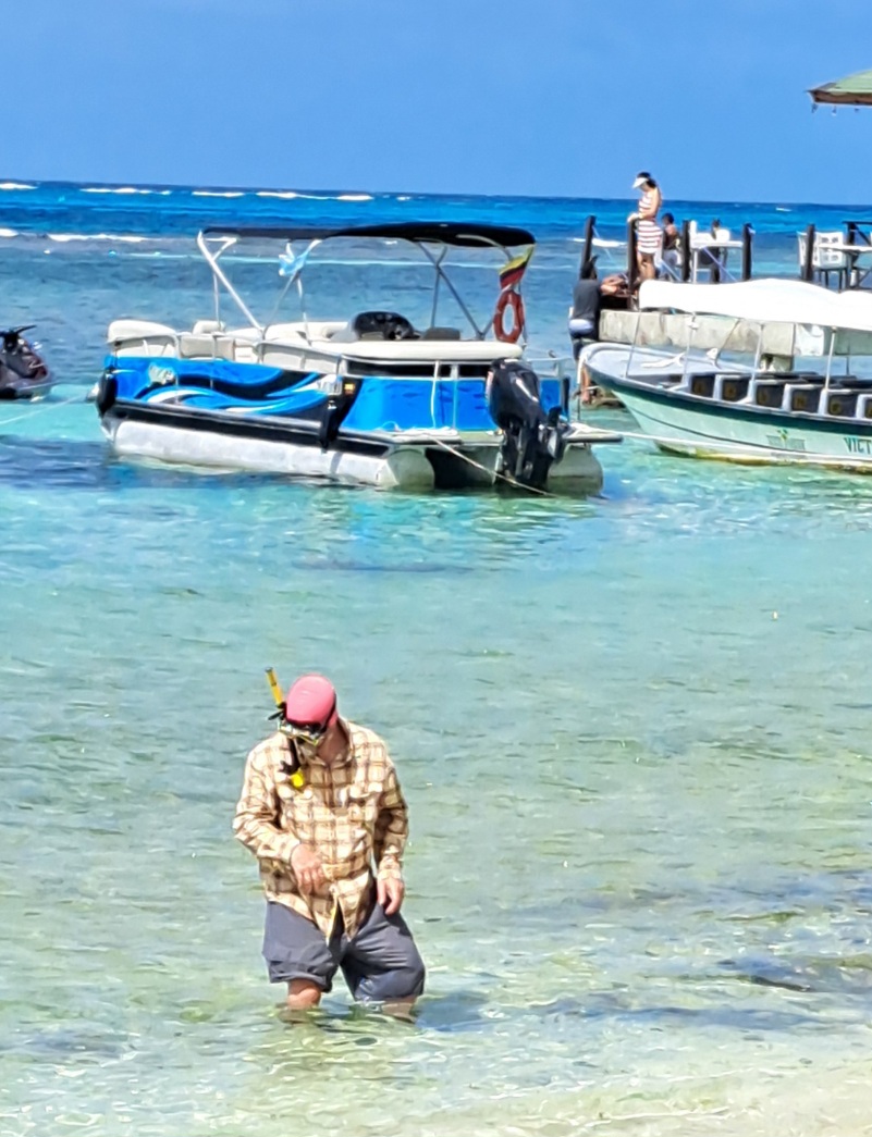On the second day, Saturday, we took a snorkeling tour to Haynes Cay, the “Aquarium”, Rose Cay, and Managlares (mangroves). The boat dropped us off at Haynes Cay, a small island where there were restaurants and a place to store our extra gear. Then we walked through shallow water to Rose Cay to snorkel. It was great snorkeling with a lot of fish. We even saw several well-fed nurse sharks. We were in the postcard – again!