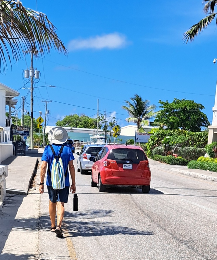 We got the dinghy in the water and went ashore. Not knowing the area, we didn’t feel like we could leave the dinghy unattended as we forgot to bring our cable and lock. I stayed with the dinghy, and Dave went in search of a Cayman courtesy flag. It was a good time to call my mom! Once Dave came back with the flag, we went back to the boat and had it flying in no time.