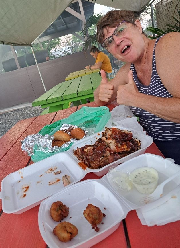 With the lock in hand, we headed back to the island to check out the awesome grocery store. It was like a Whole Foods market but even more expensive! Dave found The Jerk BBQ Hut, so we went off for dinner. It was so, so good and not that expensive. All in all, a great first day on Cayman.