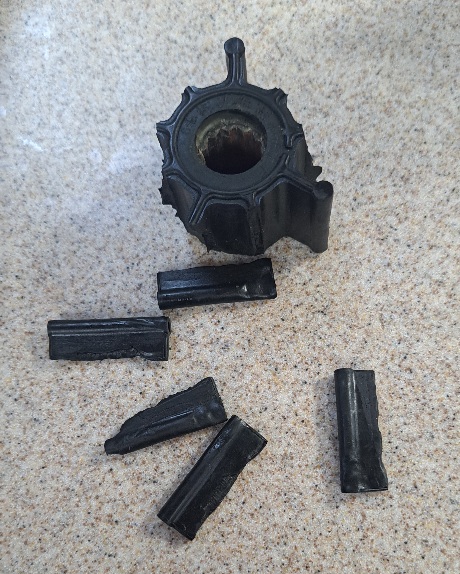 The next day we went to the port captain’s office to check out of the country and get fuel. It was a good thing we gave ourselves a lot of time since we had to wait about an hour for the fuel truck. After all our paperwork was done, we went back to the boat to prepare for our 3 night – 4 day journey to Key West, Florida, USA! Dave changed the oil. When he went to turn the engine on, he noticed that we didn’t have enough water coming out the back of the boat. The first thing he thought of was that the raw water filterwas clogged with crud. No joy for an easy fix. Next, check the impeller. Usually a two-hour job. Sure enough, it was bad. 7 fins were gone. We found 5 fins. The other 2 are, who knows, somewhere in the heat exchanger. Fixing broken things in tropical destinations. What it’s all about!