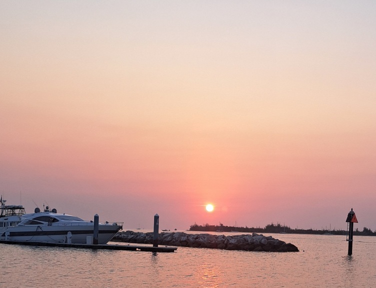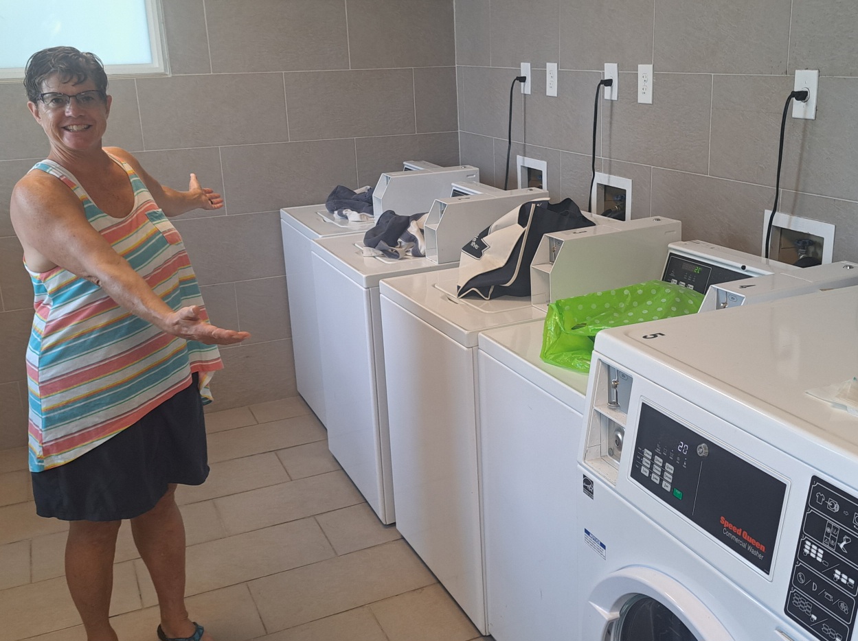 The first order of business the next morning for Mary was laundry. Five loads worth. It was OK since there was AC and coffee! Dave tried to help but was reminded several times how little he knew about laundry, so he went off to tackle his own list of chores to accomplish.  He went back to the boat and filled our water tanks, rinsed down the salty boat, dumped garbage, recycle our old engine oil, and cleaned up and stowed gear left over from our 500-mile journey, and scheduled a second nightingale paradise with the harbormaster.