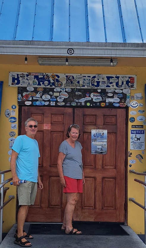 When we got back from grocery shopping, Mary opened 3 hatches on top as we were taking our groceries down below. Another couple from another Posse boat pulled up in their dinghy and invited us to the tiki bar. Groceries were quickly put away and we jumped in their dinghy.
