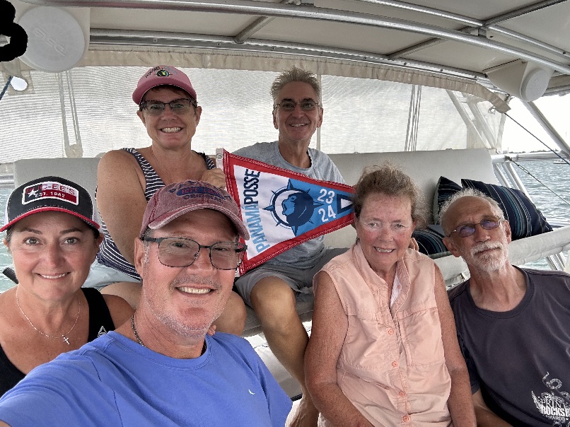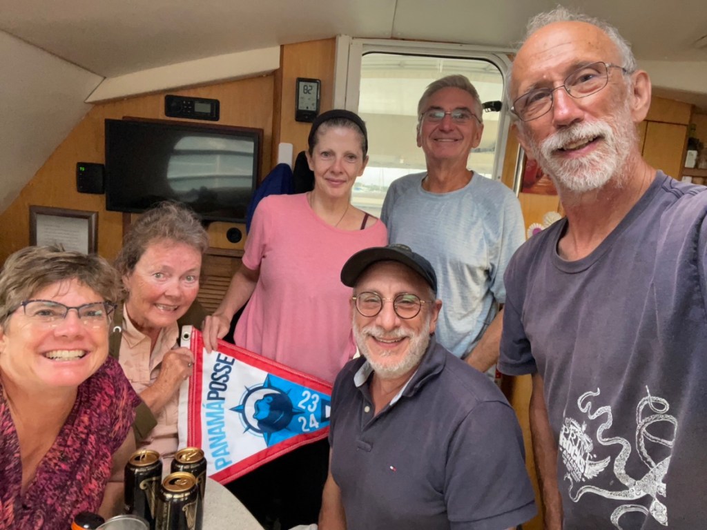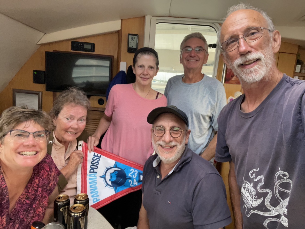 The first gathering was Tess and John from French Kissing Life, Lynette and Bruce from Cerca Trova and us. We are all part of tge Panama Posse. All of us were going north to Ft. Pierce the next day and continuing up the coast later. It called for a planning meeting and general get better aquainted gathering. Later that afternoon, we met on Cerca Trova again, this time with Josh and Shirley from Saphina. The the couples met in San Diego in 2021 as we all prepared to head south. It was great to visit and catch up. You never know when you will meet your cruiser friends again.