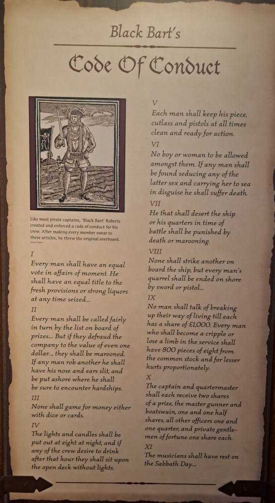As we wandered the town we found a Pirate museum. Heck yeah! If you want to become a Pirate there is a code of conduct you must follow. It also helps to be competent in firing a cannon. Also, always listen to Black Beard!
