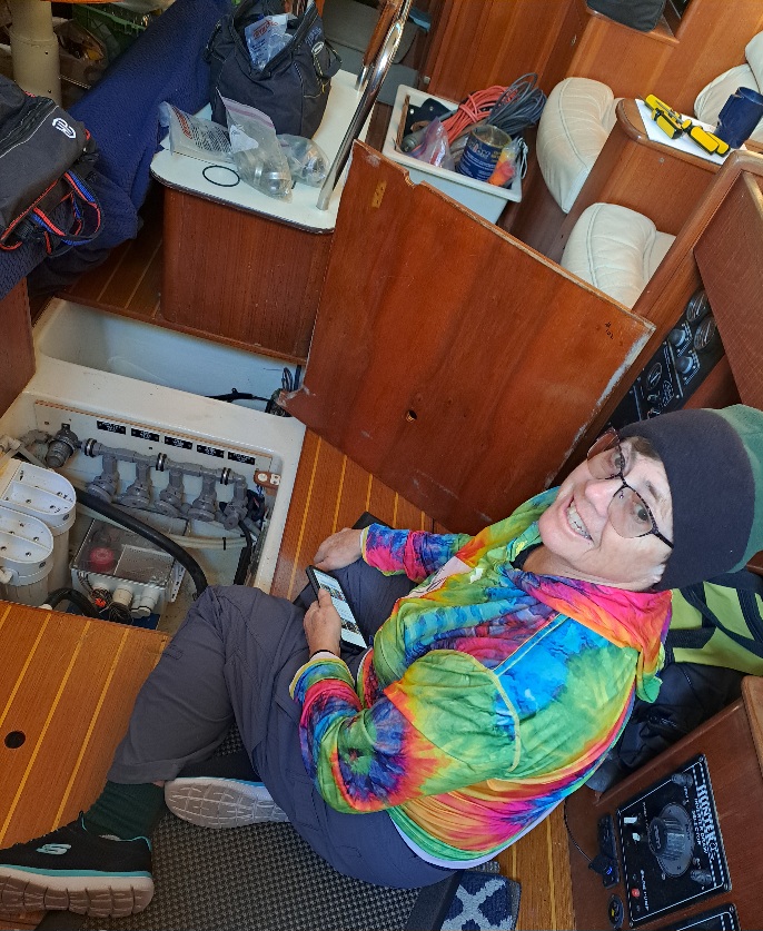 It’s cold! Mary dug around in a couple of our cubbie holes and found our foul weather gear. It had been vacuum packed since San Diego. It kind of helped. We so miss the hot weather in Mexico and Central America.