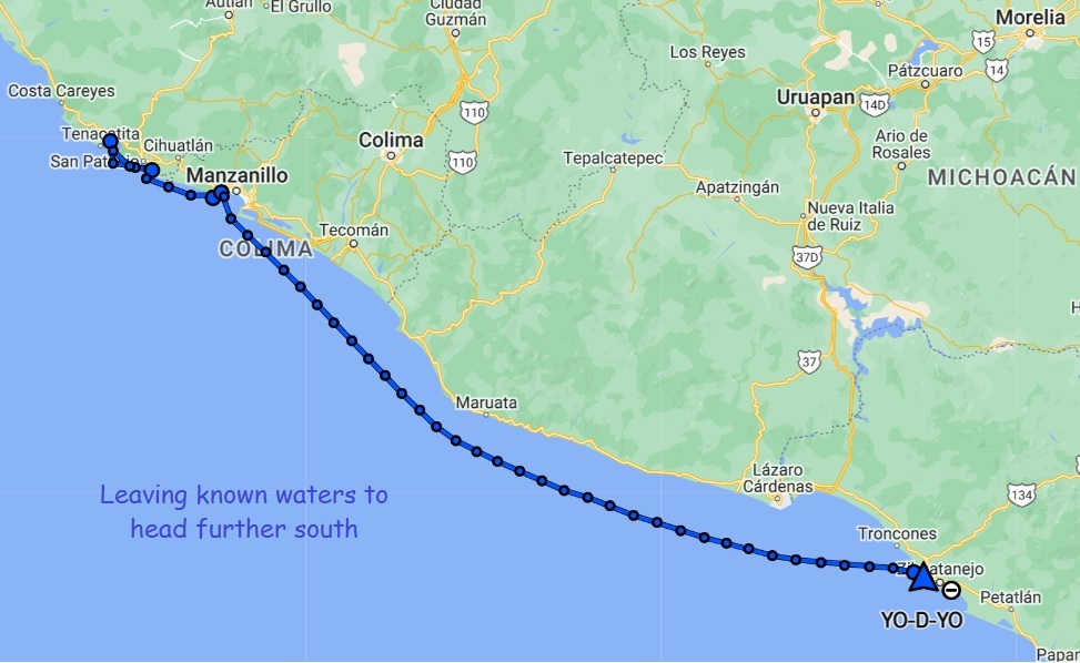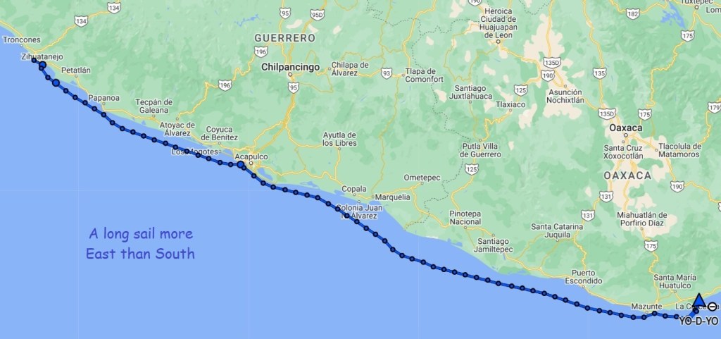 The next big leg was to get to Huatulco so we could wait for a weather window to cross the dreaded Tehuantepec. This was another long leg with a couple overnight stops planned. Instead of overnight rests, we could not find acceptable anchorages, so we sailed overnight two nights in a row.