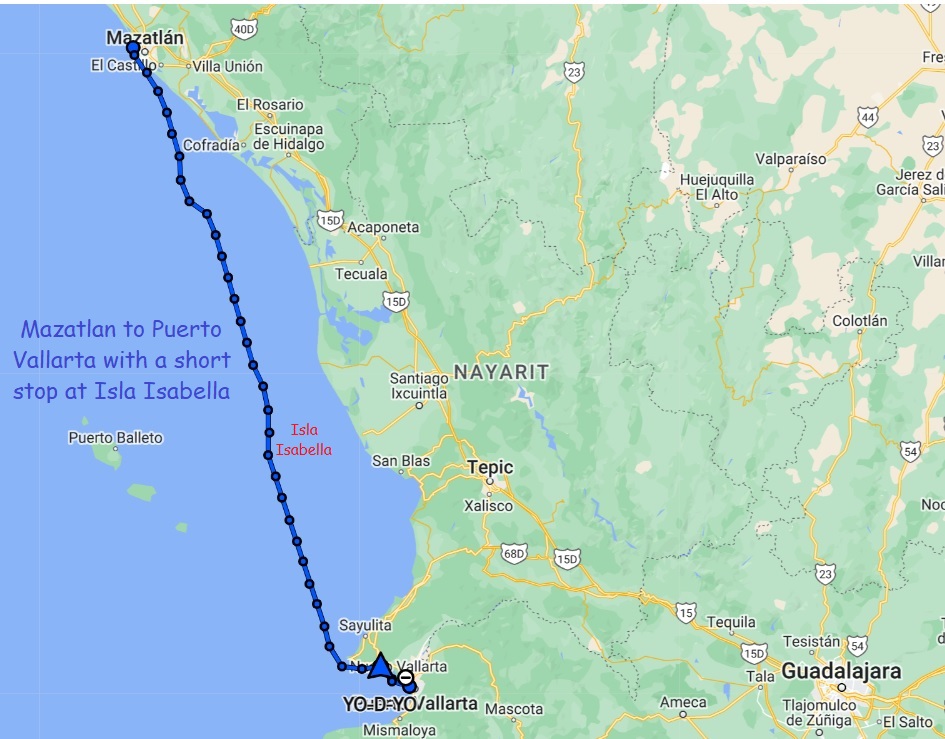 After enjoying La Paz and getting some sailing in the islands with our first-ever guest, Ken, we headed across the Sea of Cortez to Mazatlan.